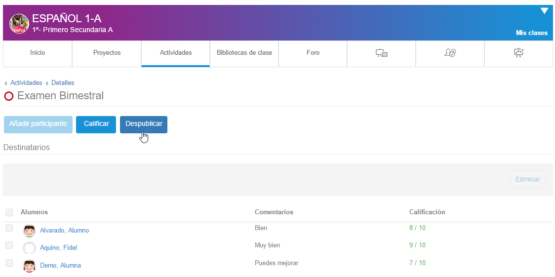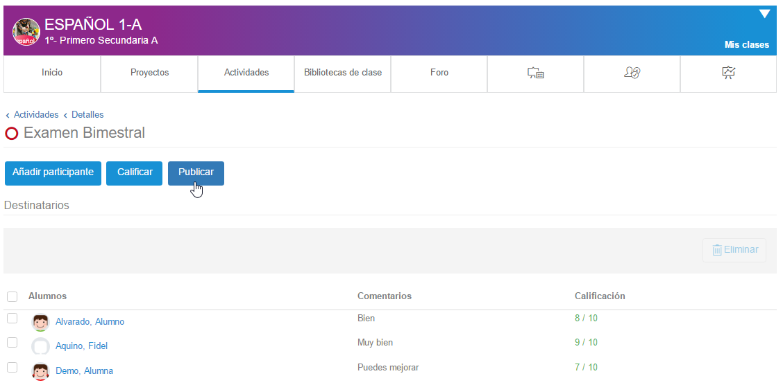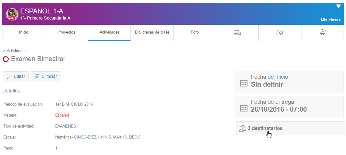 - Desde el icono de acceso directo de las actividades en la sección "Mis clases"