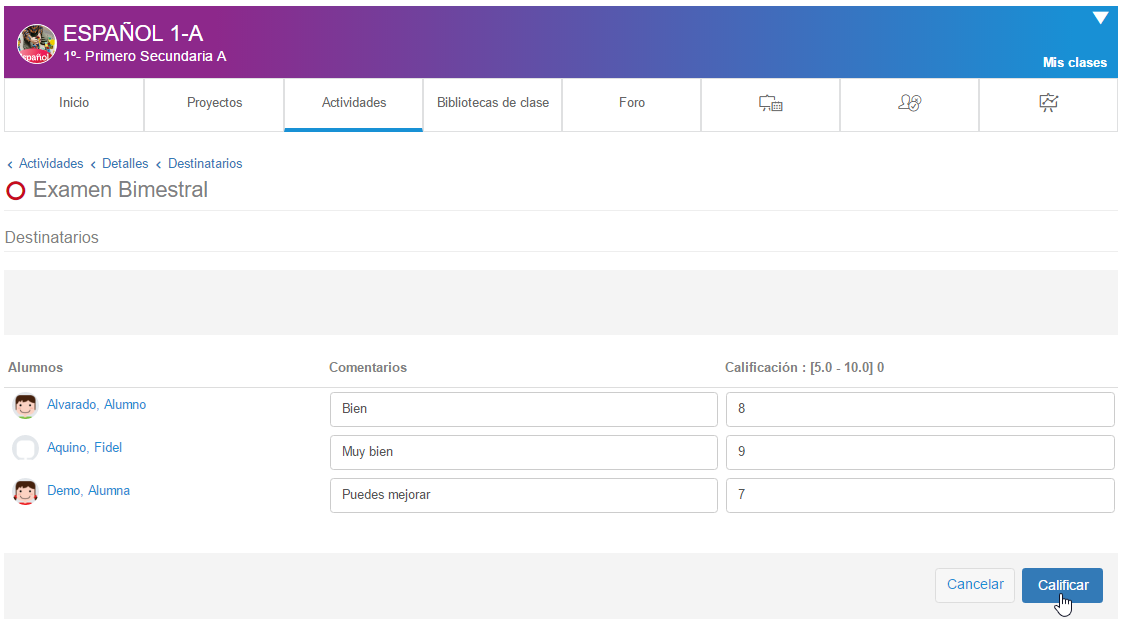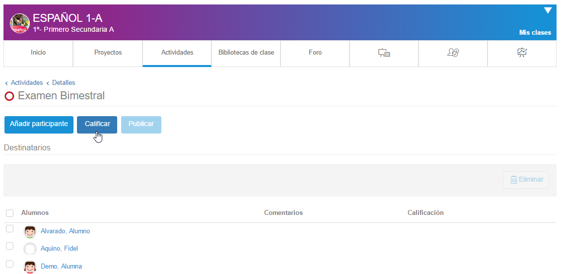 - Desde la lista de actividades, pulsando el engrane dará la opción de calificar.