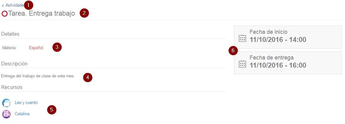 Una actividad es una tarea que el alumno debe realizar en el periodo de tiempo que el profesor haya establecido. Una vez finalizada, el profesor la evaluará.