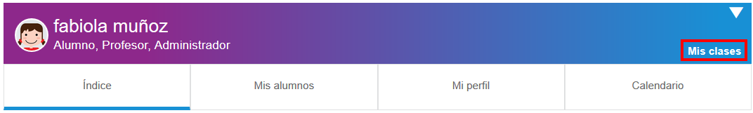 El primero en la parte superior derecha, pulsamos en "Mis clases" y se desplegará el listado de clases en las que estamos inscritos en este nivel: