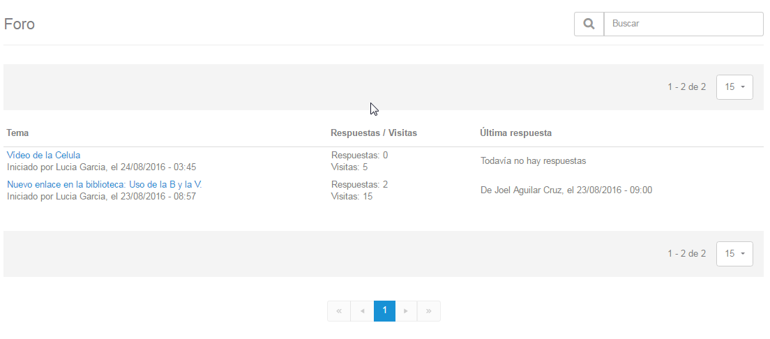 Para acceder a un tema, pulse sobre su título. Verá los comentarios que han escrito todos los participantes.