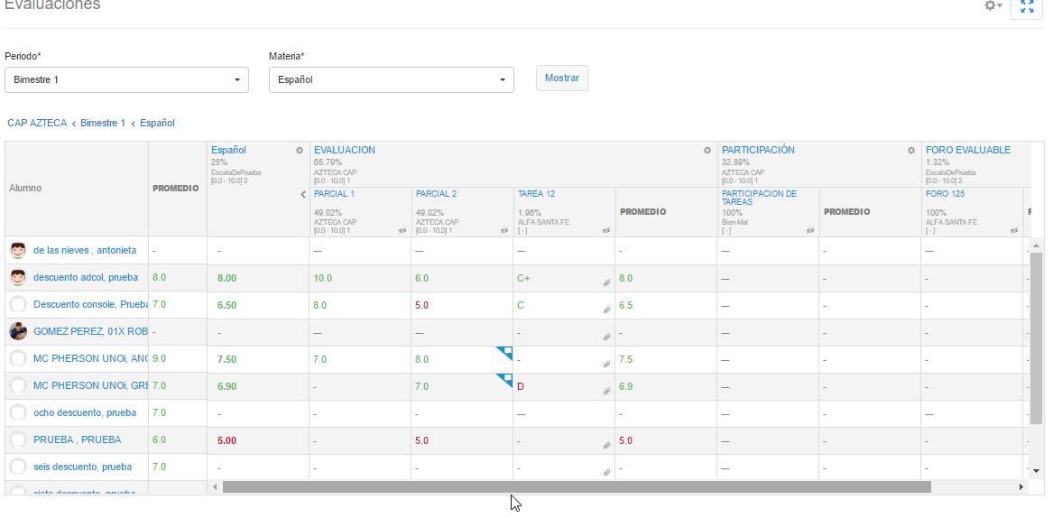 Ya seleccionado nuestro periodo y materia nos desplegara las opciones para realizar los cambios que consideremos.