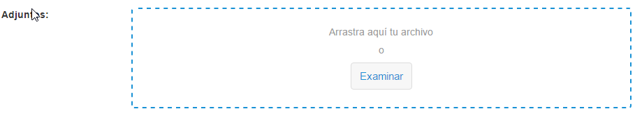 Si en nuestro mensaje deseamos adjuntar algún fichero debemos de arrastrarlo o adjuntarlo examinando en nuestros documentos en el apartado de Adjuntos.