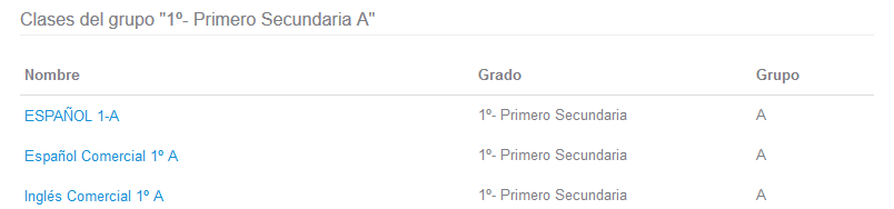 Se tiene la opción de ver cuales son las clases en las que está el grupo base, pulsando "Ver las clases del grupo asignado".