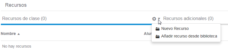 Desde estas opciones podrá añadir recursos nuevos ("Nuevo Recurso") o ya existentes ("Añadir recurso desde la biblioteca").