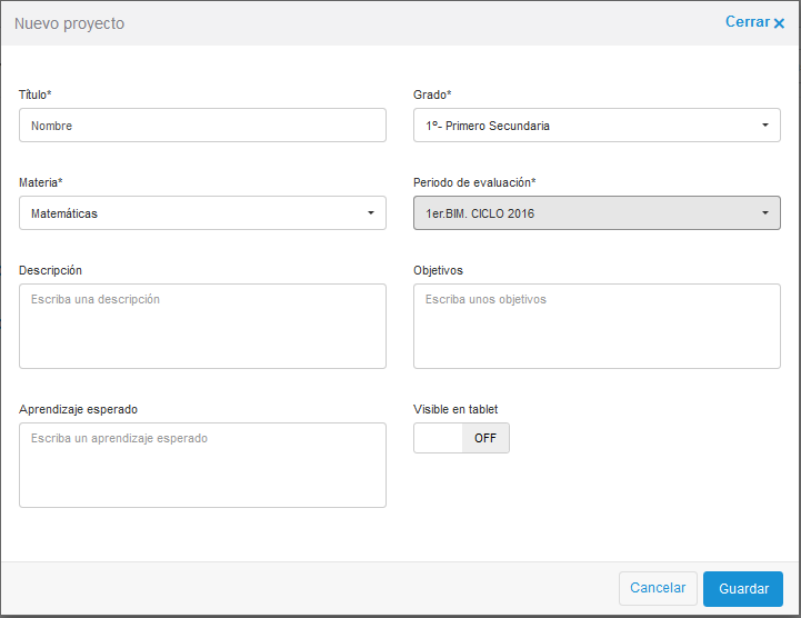 Un Proyecto o Tema es un conjunto de materiales con los que cuenta como profesor para trabajar en clase. Usted podrá subir material formativo desde su computadora y asignarlo a sus clases.