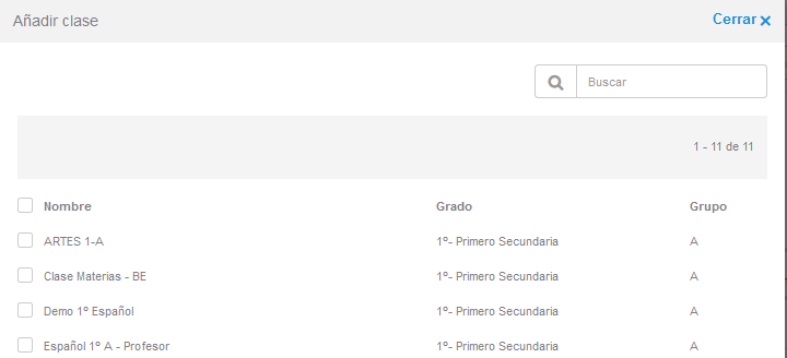 Después abrirá una pantalla flotante con las clases que coincidan con el grado y materia del proyecto/tema: