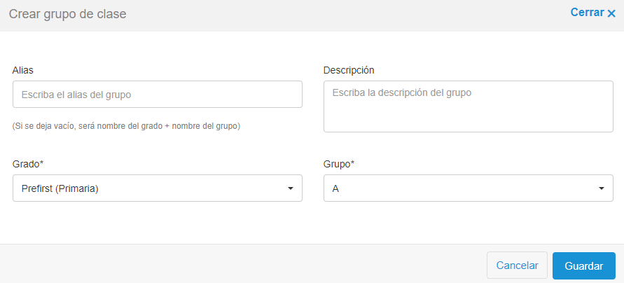 En esta sección es acceso directo para crear grupos en el colegio.