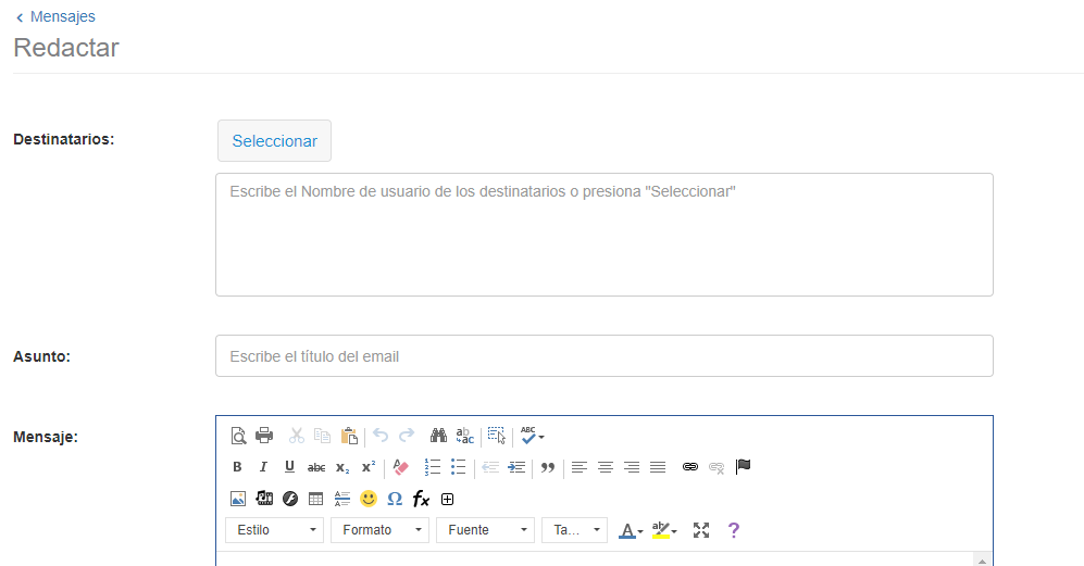 Esta sección nos ayuda a a crear mensajes y visualizar los mensajes enviados.