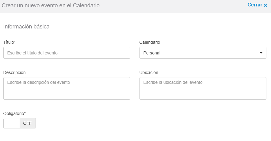 Crear nuevo evento de calendario