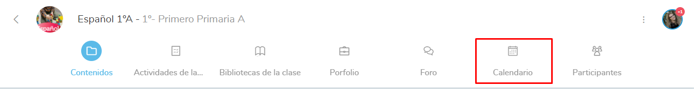 Dentro de una clase, tenemos una pestaña de calendario que nos da acceso a él.