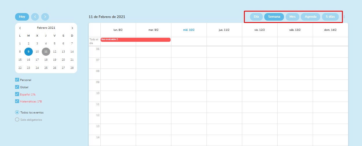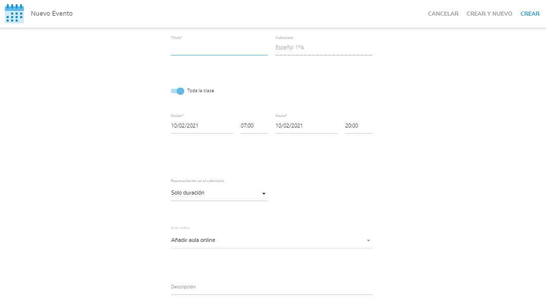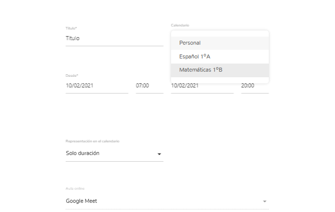 La diferencia entre crear un evento desde el calendario de la clase y del general es que el evento desde la clase es directo para los alumnos de la clase, y desde el general podremos seleccionar alguna de nuestras clases en que estemos inscritos o crear un evento personal.