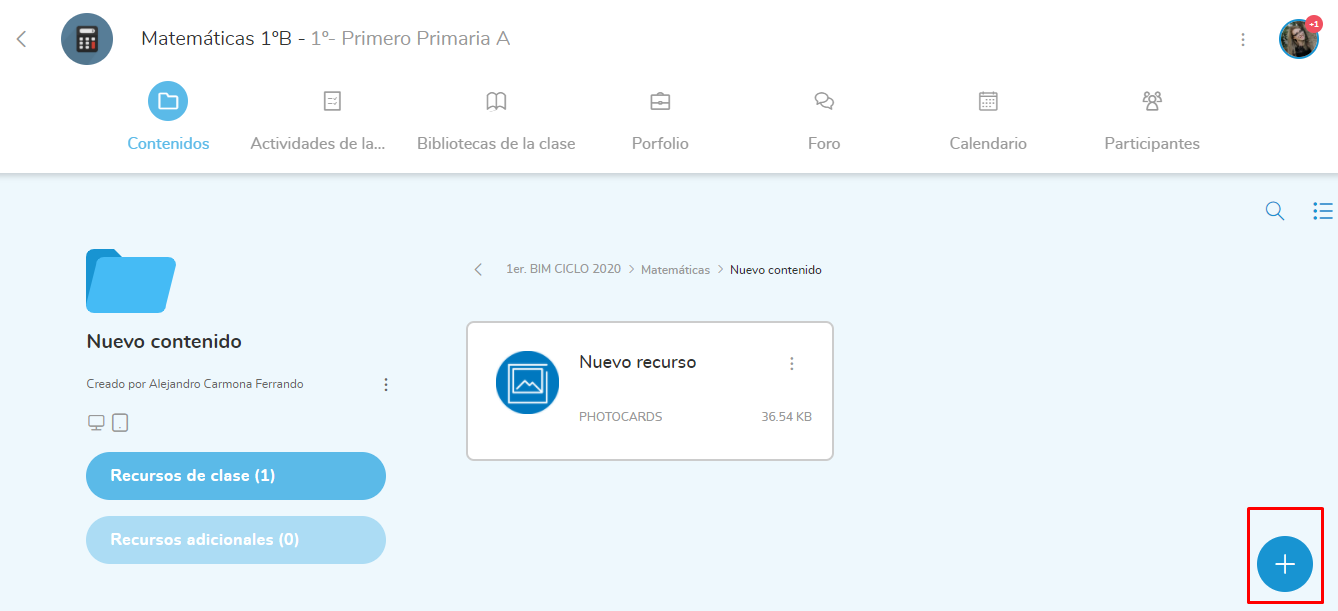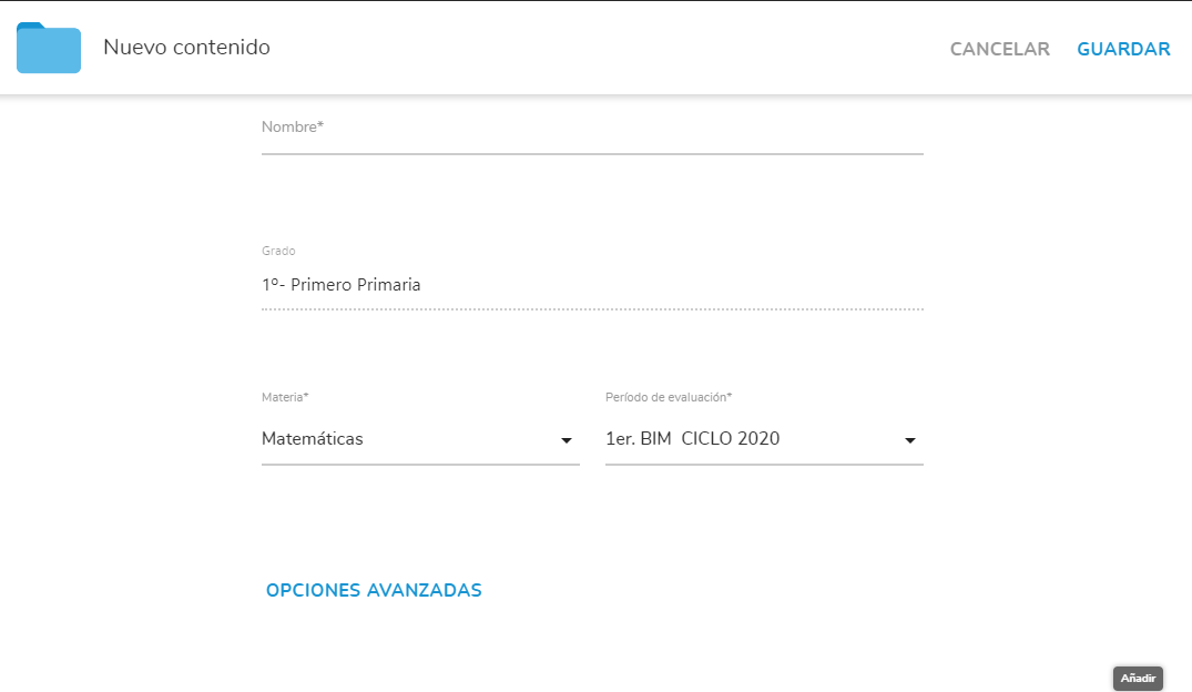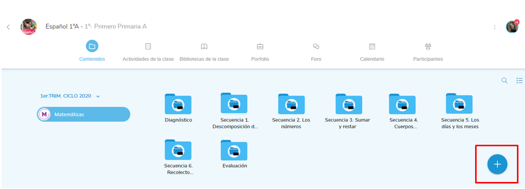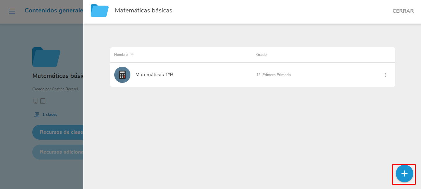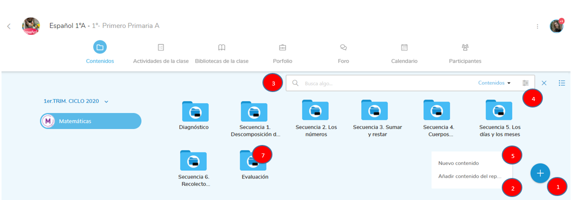 Para añadir a una clase, tendrá que ir a Contenidos generales, situados en el menú superior izquierdo.