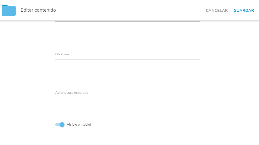 - Al pulsar la carpeta de cualquier tema, se mostrarán los recursos del tema o proyecto.
