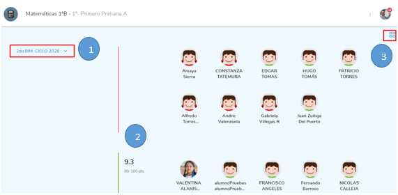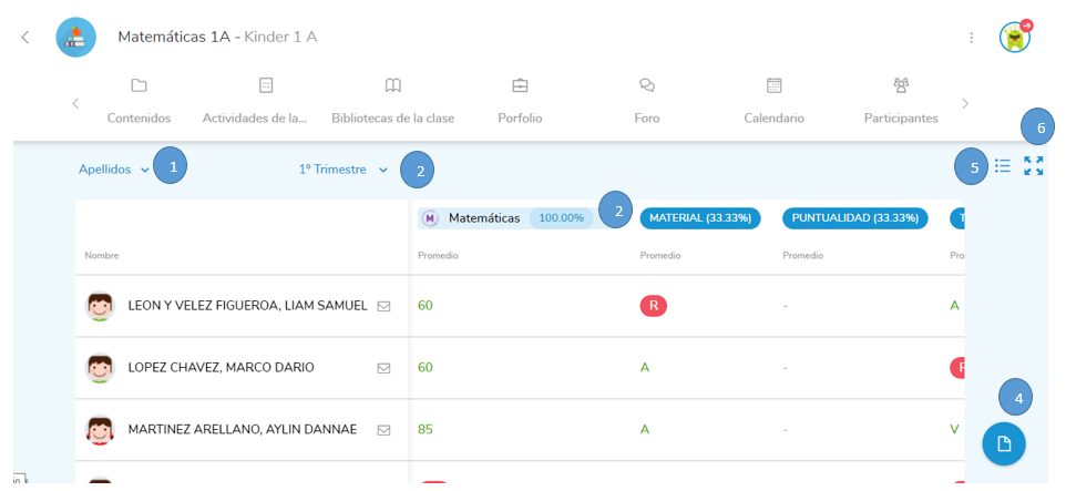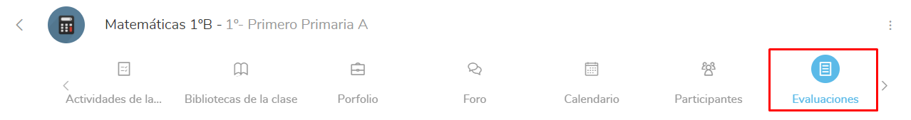 El acceso a la sección evaluaciones, se realiza a través del menú dentro de la clase: