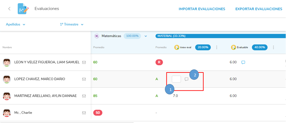 Al pulsa sobre el icono de evaluaciones, se accede al detalle, en donde tienes las siguientes opciones: