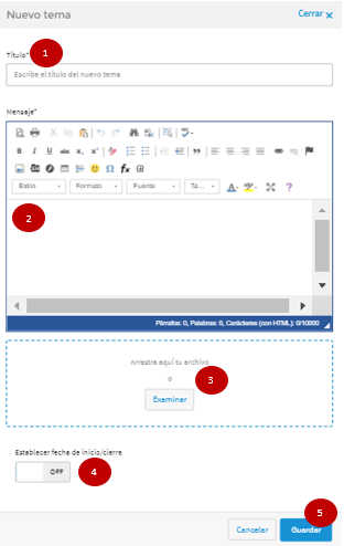 - Botón "Guardar" para confirmar en envío del foro.