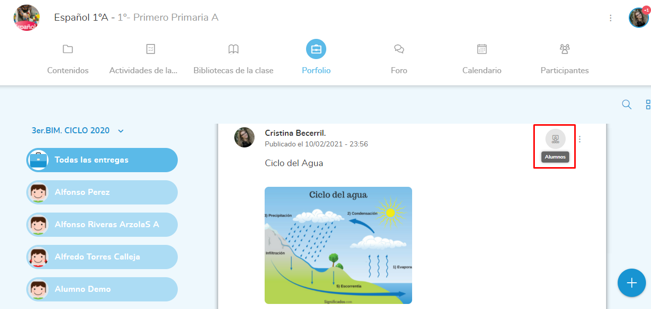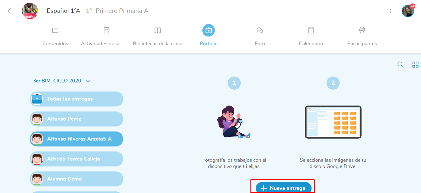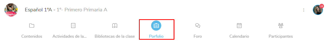 Dentro de la clase, podrá acceder al Portfolio (es posible que no esté liberado en el colegio).