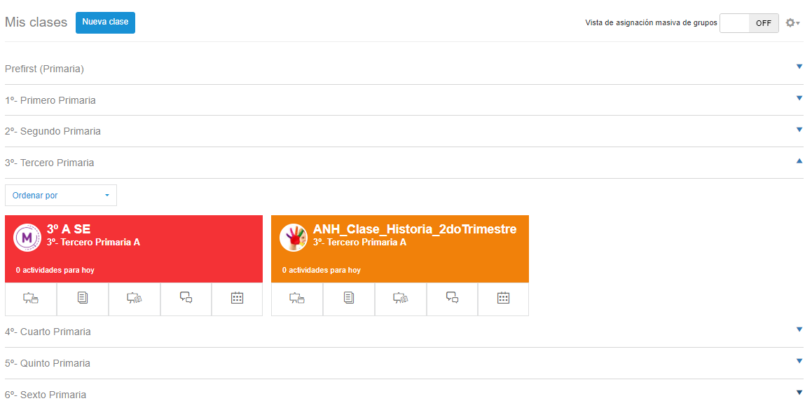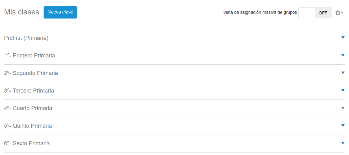 Al acceder a la sección de Mis clases desde el menú izquierdo nos dirige a una pagina donde observaremos todos los grados que cuenta el nivel en el que estamos.