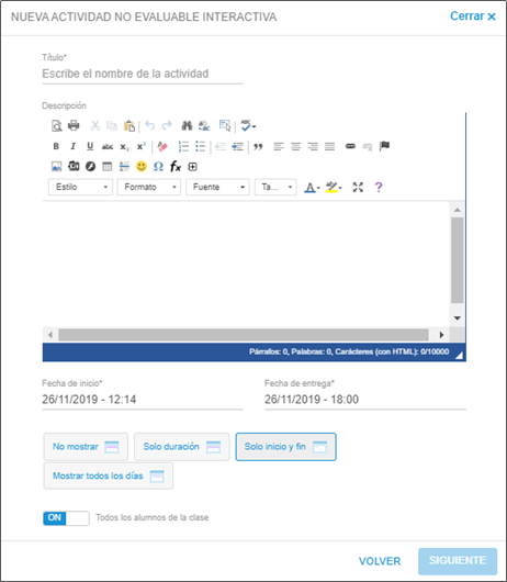 Opción ON/OFF para incluir a los alumnos a las actividades ya creadas en las clases