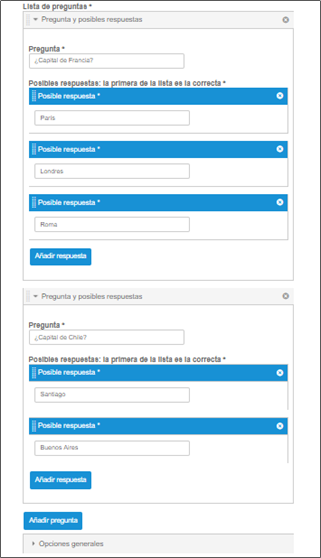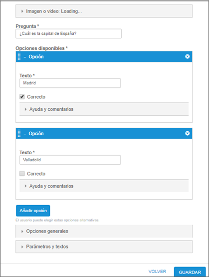 En la sección encontrará las siguientes opciones: