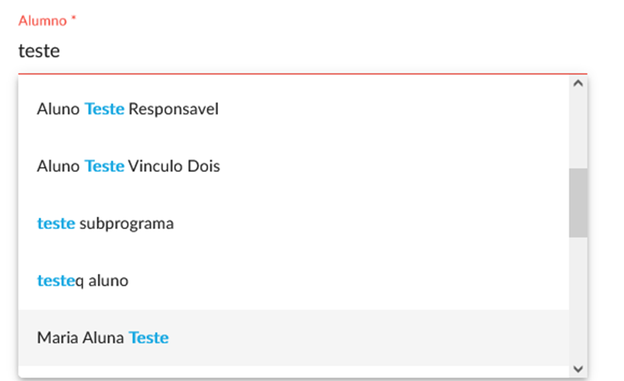 El campo “alumno” será un autocompletado que irá sugiriendo alumnos sobre los que tenga visibilidad el usuario.