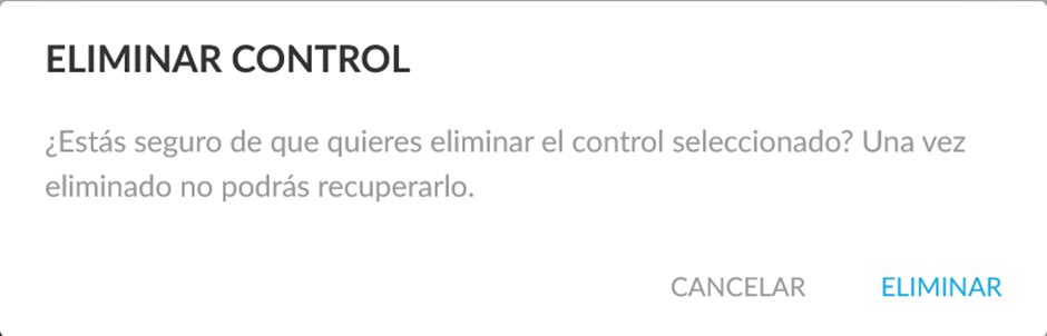 Una vez que pulsamos en eliminar un control, nos sale un diálogo para confirmar si queremos borrarlo