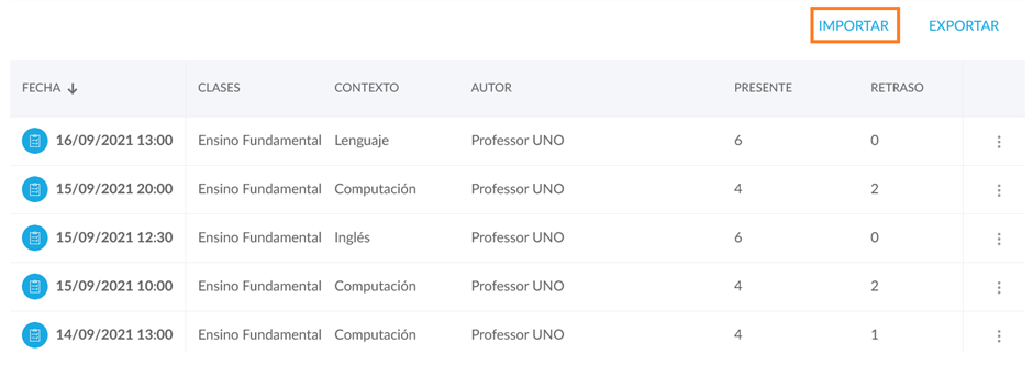 Se puede realizar una importación de los datos de asistencia de un control desde csv pulsando el botón de “Importar”.