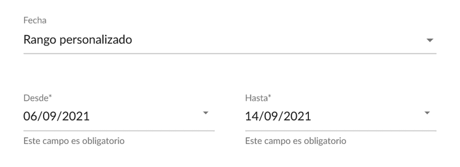 Si por ejemplo buscamos por rango de fechas personalizado, nos aparecerán los controles de esas fechas.
