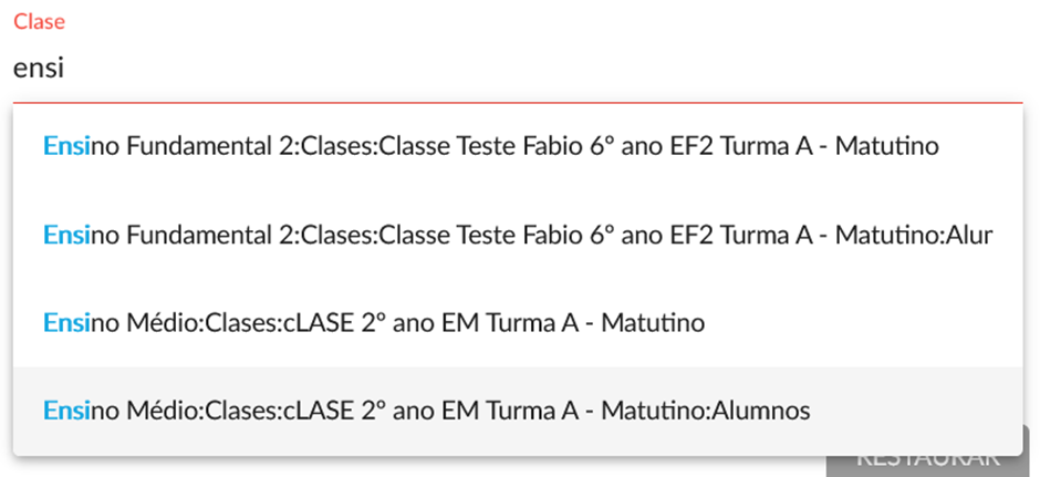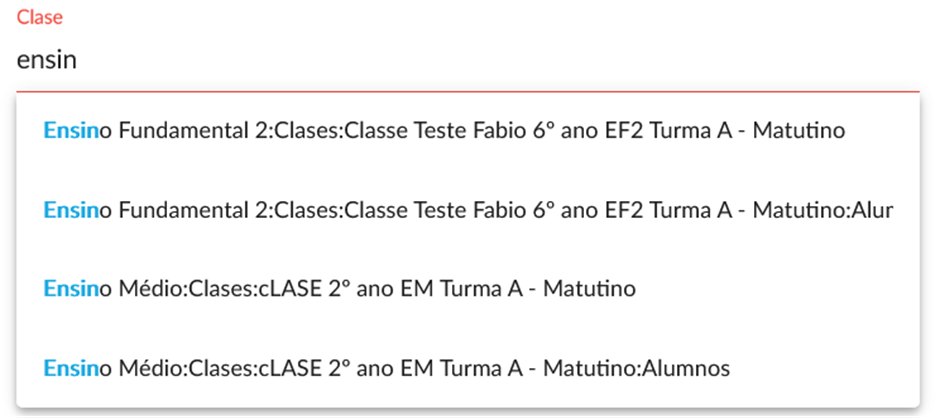 Nos saldrá un autocompletado en clase en el que se ven las clases de las que somos profesores, la materia es opcional: