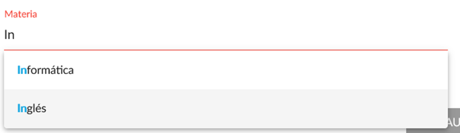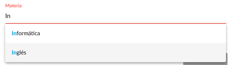 Si filtramos por materia nos saldrán sugerencias de materias visibles