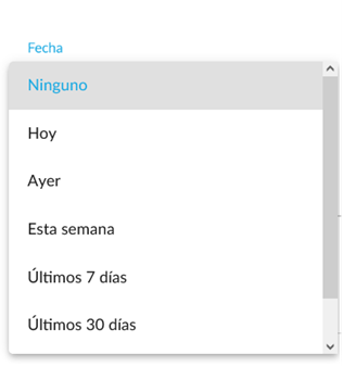 Si realizamos la búsqueda por fecha, tendremos opción de Hoy, Ayer, Esta semana, Últimos 7 días, Últimos 30 días o un Rango personalizado de fechas