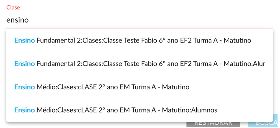 Si filtras por clase sale un autocompletable sugiriendo las clases sobre las que se tiene visibilidad: