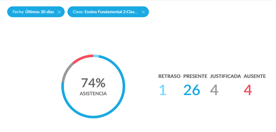 Si es profesor o administrador podrá ver las asistencias que ha creado con una gráfica por día y alumnos, se podrán consultar los porcentajes de asistencia por día en unos rangos de fechas determinado.