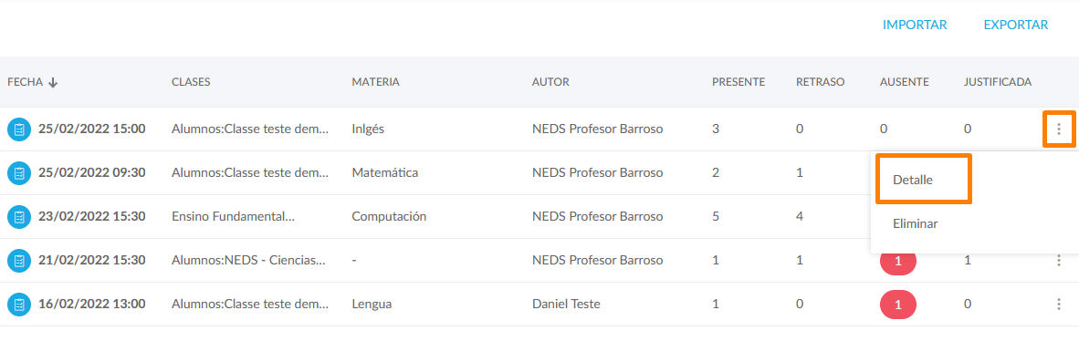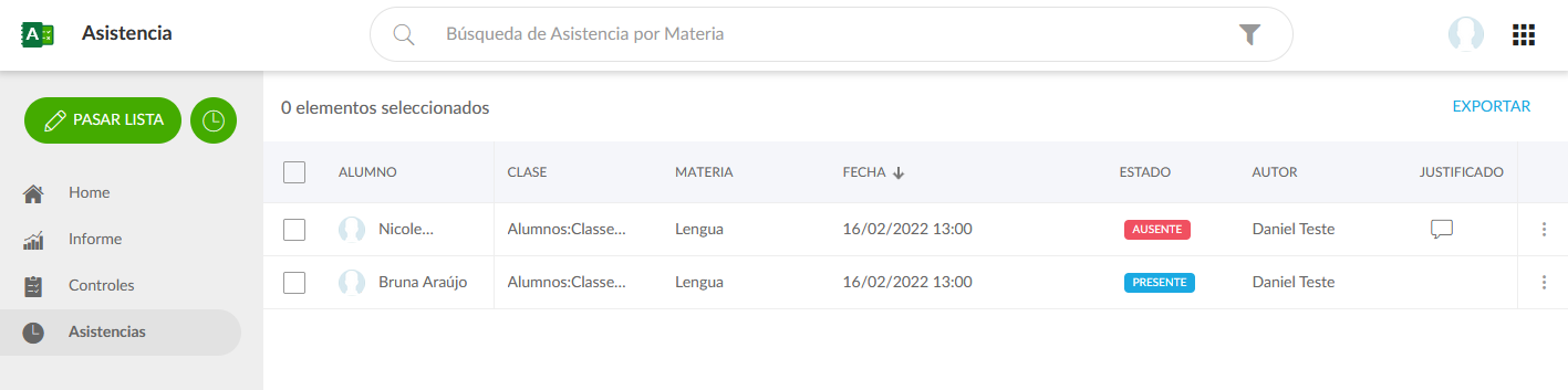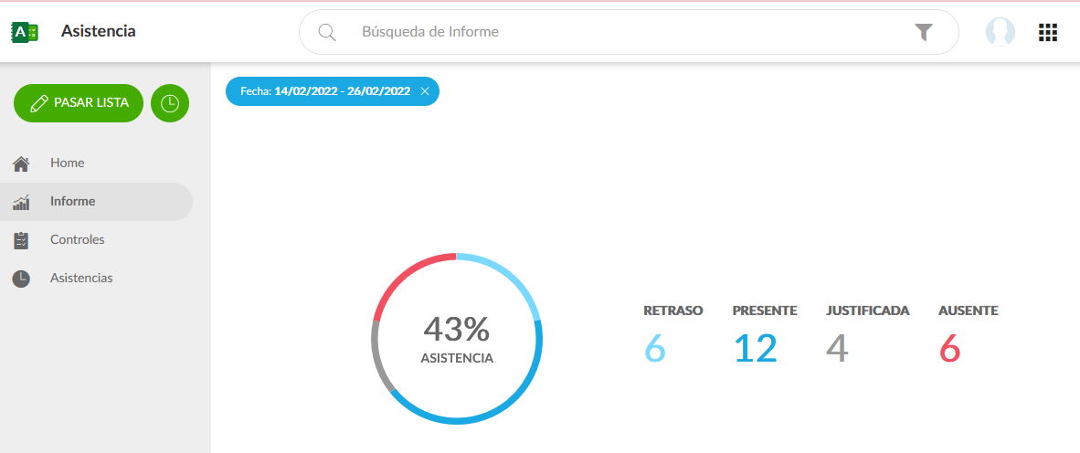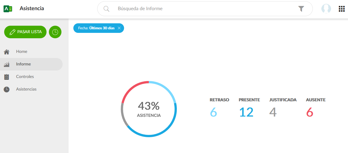 Para para lista tendremos que pulsar el botón de “Pasar Lista”