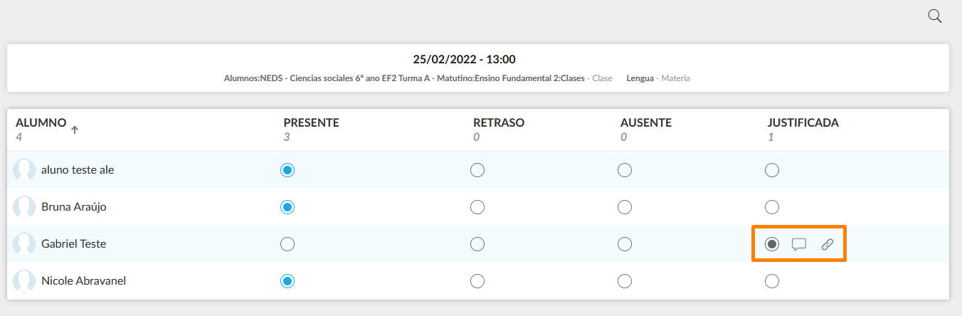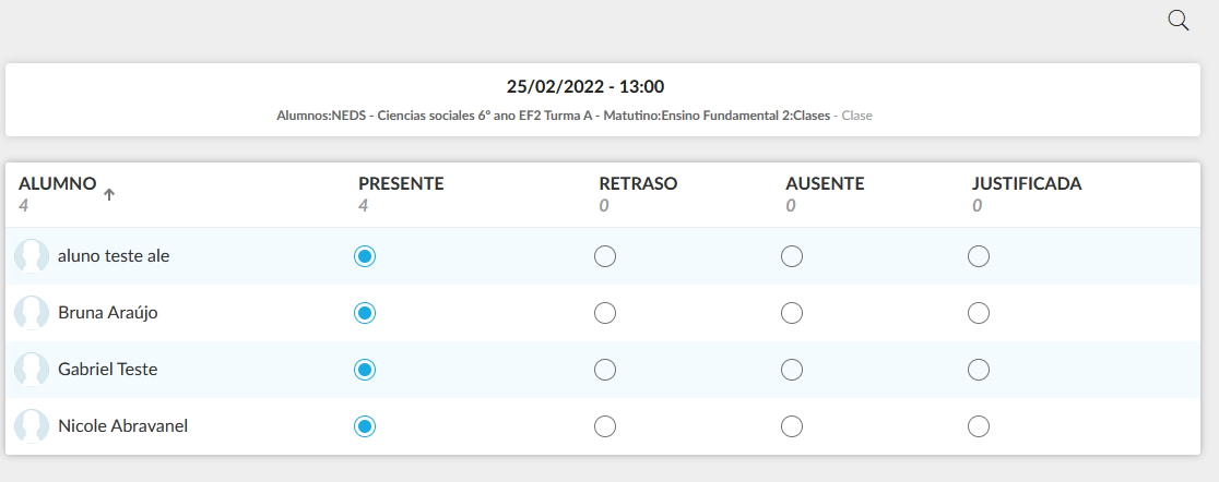 Una vez pulsado el botón de pasar lista, veremos el menú para rellenar los datos de asistencia