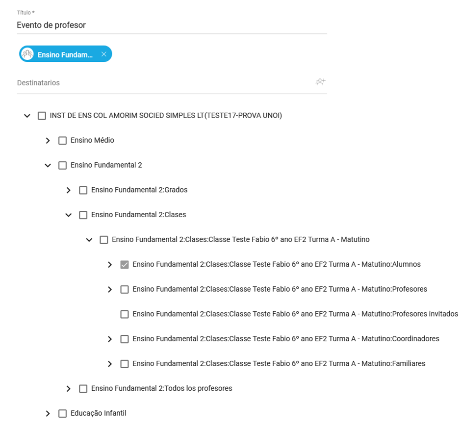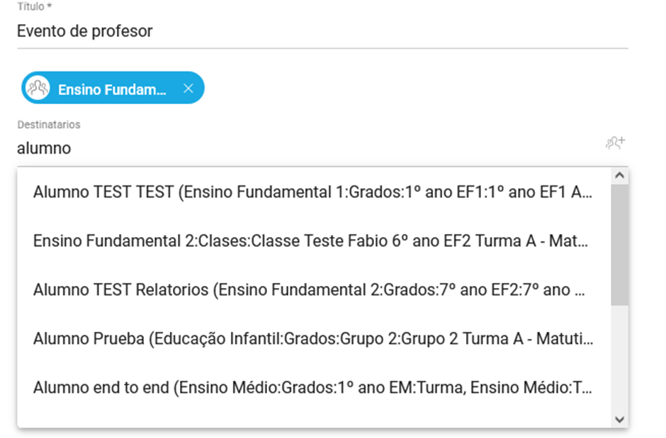 El número de destinatarios no se mostrará en caso de que el usuario sólo pueda crear eventos personales. En caso de mostrarse aparecerá la opción “Ver todos” que al presionarlos mostrará cuales son