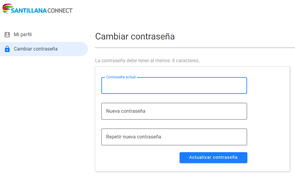 Se le pedirá la contraseña actual para poder modificarla y la nueva contraseña.