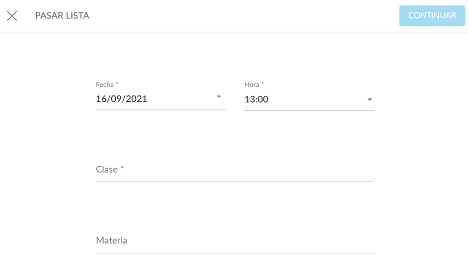 Una vez pulsado el botón de pasar lista, veremos el menú para rellenar los datos de asistencia
