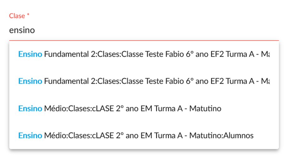 Nos saldrá un autocompletado en clase en el que se ven las clases de las que somos profesores, la materia es opcional:
