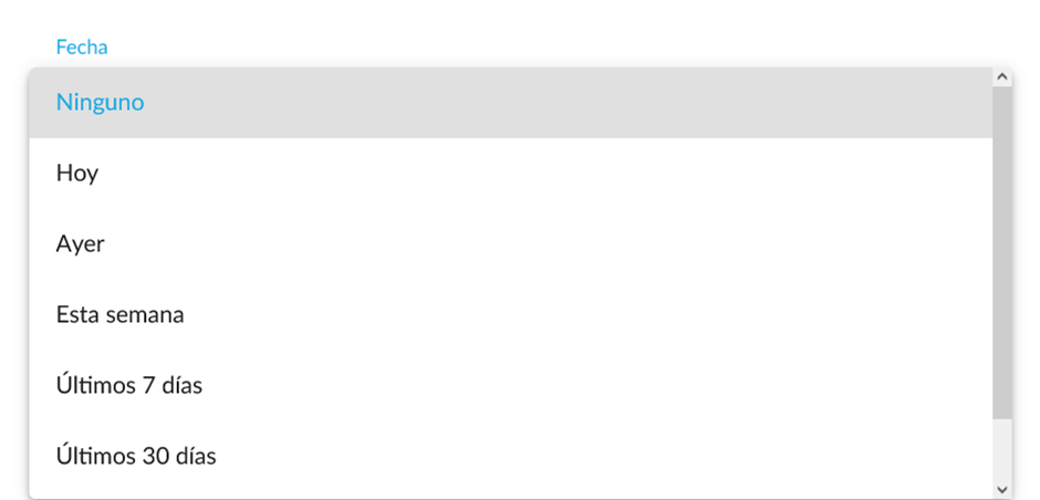 Si realizamos la búsqueda por fecha, tendremos opción de Hoy, Ayer, Esta semana, Últimos 7 días, Últimos 30 días o un Rango personalizado de fechas