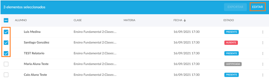 Se podrían seleccionar todos los alumnos o varios para editar y pulsar el botón “EDITAR” de la cabecera para editarlos en bloque