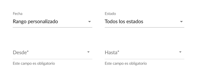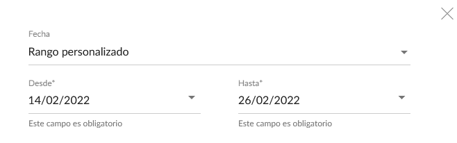 Si por ejemplo buscamos por rango de fechas personalizado, nos aparecerán los controles de esas fechas.
