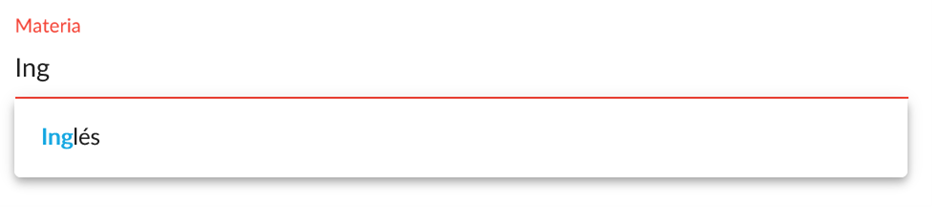Si filtramos por materia nos saldrán sugerencias de materias visibles