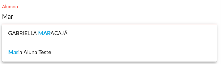 Podremos realizar búsqueda por alumno y si vamos escribiendo nos irá sugiriendo alumnos a los que tenemos acceso