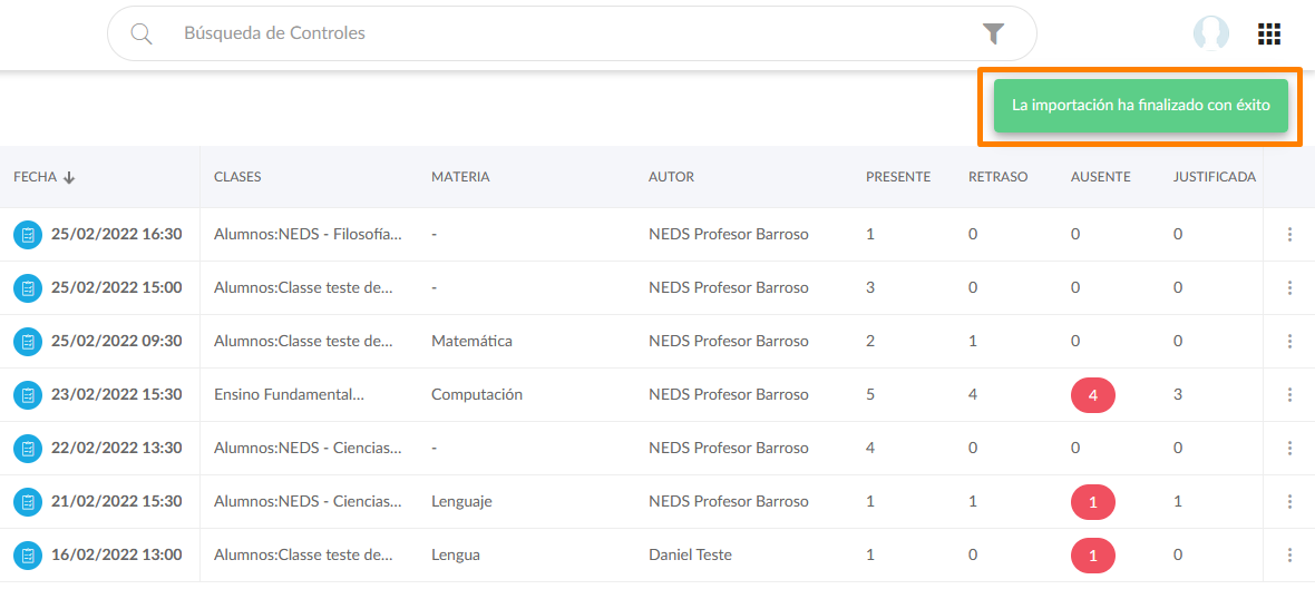 Se puede realizar una importación de los datos de asistencia de un control desde csv pulsando el botón de “Importar”.