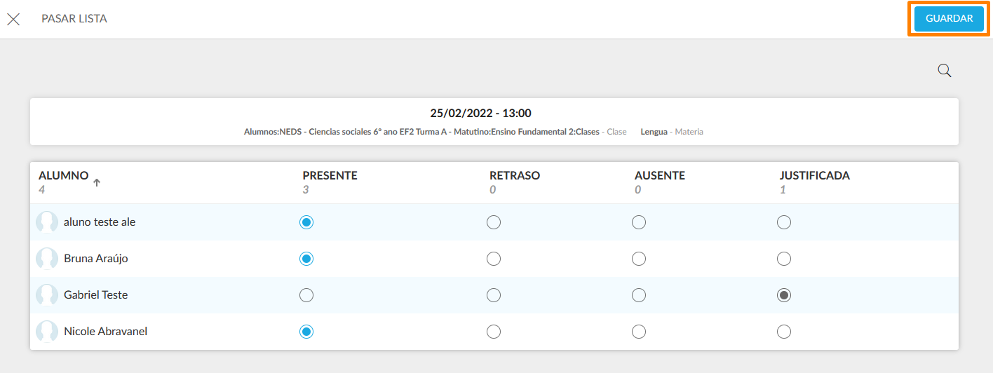 Para para lista tendremos que pulsar el botón de “Pasar Lista”