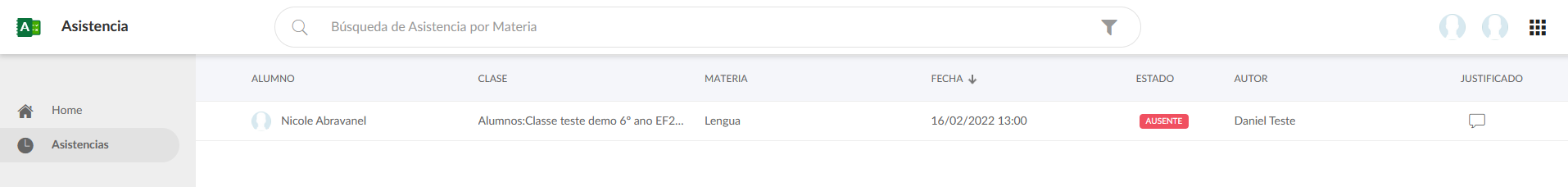 Si es alumno o familiar verá las asistencias que se le han creado al alumno
