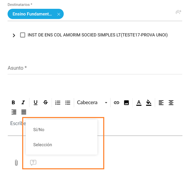 Cuando envías un mensaje tienes la posibilidad de adjuntar una encuesta en el mismo desde el botón