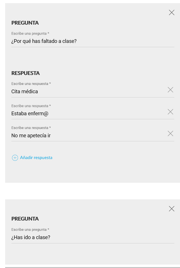Cuando se selecciona la opción de encuesta de Selección puedes cumplimentar la pregunta que quieres realizar y las diferentes respuestas que pueden dar, se pueden añadir más respuestas: